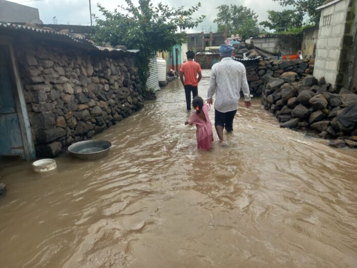 खुदावाडीत ढगफुटी – घरात शिरले पुराचे पाणी – लोकांनी रात्र काढली जागून