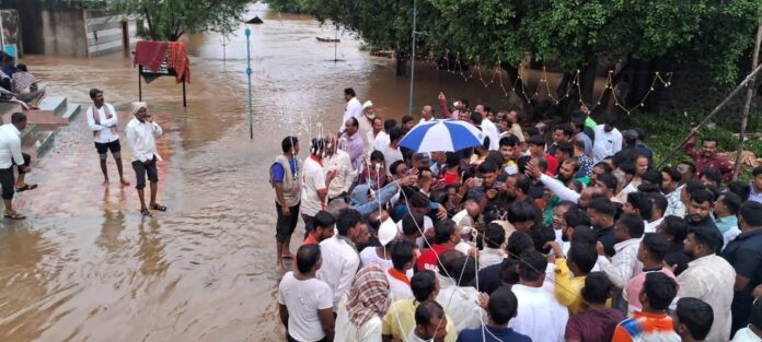 देवगाव (खु.) येथे परंडाचे आमदार प्रा.डॉ. तानाजी सावंत यांनी आज भेट देऊन पूरपरिस्थितीची पाहणी करून नुकसानीचा आढावा घेतला.