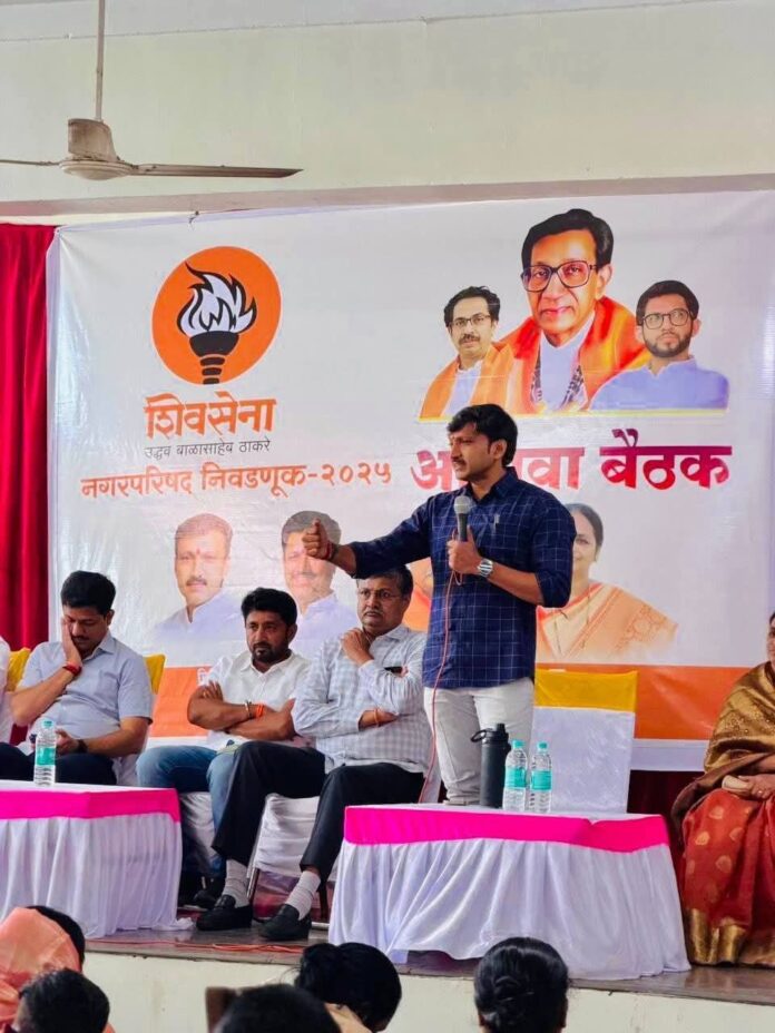 आज तुळजापूर येथील लोहिया मंगल कार्यालयात तुळजापूर नगरपालिकेच्या निवडणुकीसंदर्भात शिवसेना (उद्धव बाळासाहेब ठाकरे) पक्षाची खासदार ओमराजे निंबाळकर, आमदार तथा जिल्हाप्रमुख कैलास दादा पाटील, धाराशिव जिल्हा सहसंपर्क प्रमुख नंदू भैय्या राजेनिंबाळकर,महिला आघाडी जिल्हा संघटक शामल वडने, ऋषिकेश मगर यांच्या प्रमुख उपस्थितीत बैठक संपन्न झाली..!