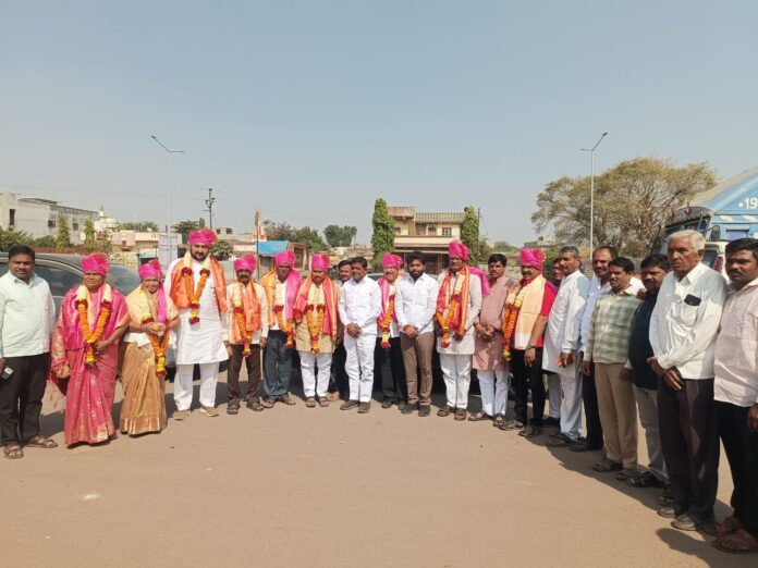 तुळजापूर तालुक्यातील जळकोट येथील गणेशराव सोनटक्के मित्र परिवाराच्या वतीने नुकत्याच झालेल्या नगरपरिषद निवडणुकीमध्ये विजयी झालेल्या नळदुर्ग येथील भारतीय जनता पार्टीच्या नगराध्यक्ष व नगरसेवकांचा जळकोट येथे गणेश सोनटक्के मित्रपरिवाराच्यावतीने सत्कार करण्यात आला. व पुढील वाटचालीसाठी शुभेच्छा देण्यात आल्या. नगराध्यक्षपदी निवडून आलेल्या बसवराज आप्पा धरणे यांनी बलाढ्य उमेदवारांना धूळ चारत ४३३१ मते मिळत दणदणीत व निर्णायक विजय मिळवत नगराध्यक्ष पदावर विराजमान झाले आहेत. त्याबद्दल त्यांचा भव्य सत्कार करून पुढील कार्यासाठी शुभेच्छा देण्यात आल्या. यावेळी नगरसेवक नय्यरपाशा जहागीरदार, दत्तात्रय दासकर, रिझवान काझी, शशिकांत पुदाले, तानाजी जाधव, सुमनताई ठाकूर, क्षमा बाई राठोड , राणीताई सुरवसे, मीनाक्षीताई काळे, किशोर नळदुर्गकर व माजी जिल्हा परिषद सदस्य गणेश दादा सोनटक्के, भाजपाचे विलास राठोड, दत्ताभाऊ राजमाने, सभापती आशिष सोनटक्के, संजय अंगुले, हनुमंत अंगुले, पत्रकार अरुण लोखंडे, विजय पिसे, मंगेश सुरवसे,बाळासाहेब पाटील, तमनप्पा माळगे, नागनाथ किलजे, सय्यद तांबोळी, संतोष वाघमारे, सदाशिव हासुरे, ज्ञानेश्वर साखरे, प्रवीण पाटील, परमेश्वर मडोळे, तम्मा कुंभार आदी भाजपाचे जळकोट व परिसरातील कार्यकर्ते मोठ्या संख्येने उपस्थित होते.